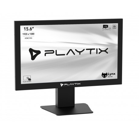 O monitor possui área visível e táctil de 15.6” no formato 16:9, com conexão VGA e HDMI.