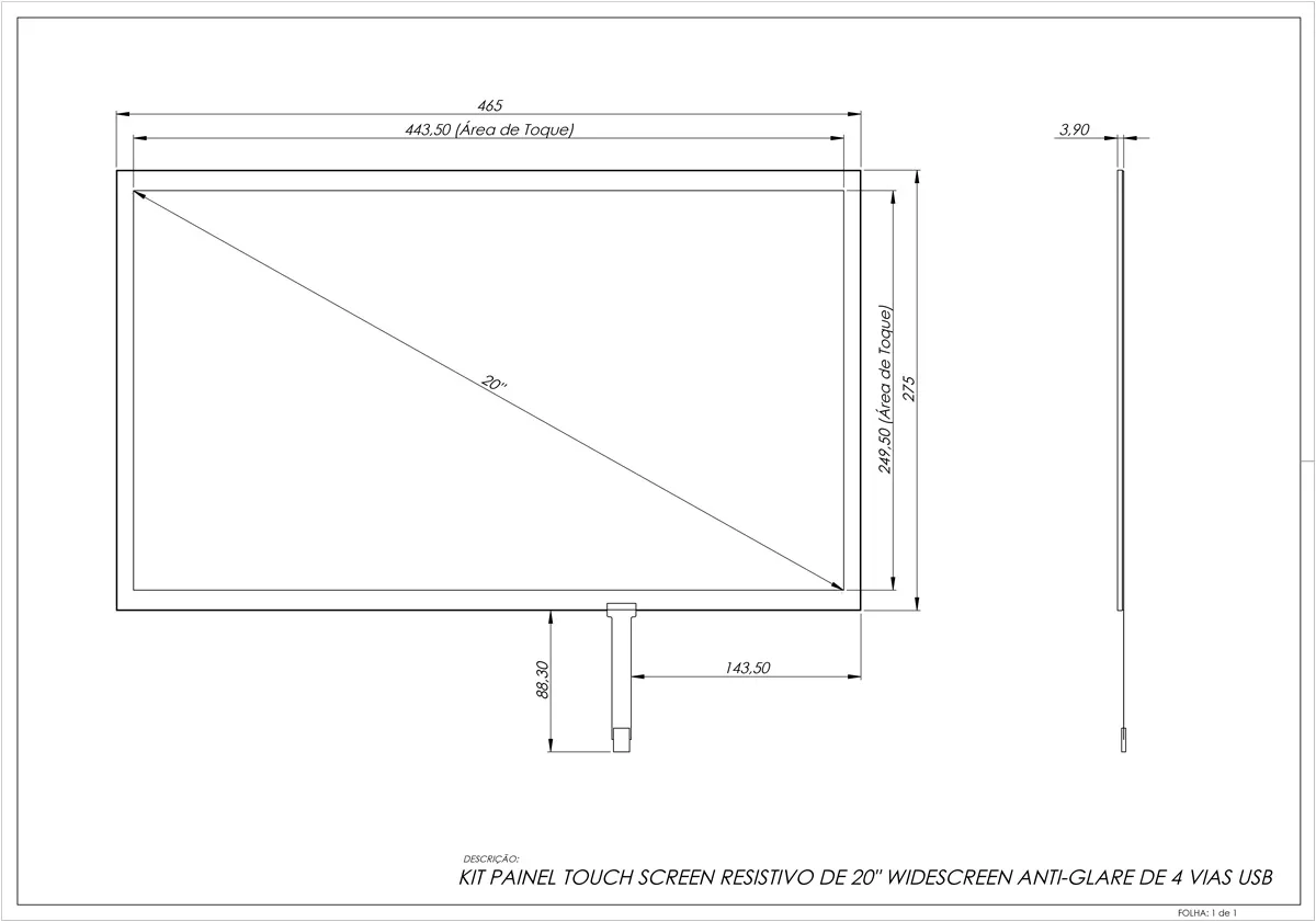 Kit Painel Sensível ao Toque Resistivo 20″ Formato 16:9