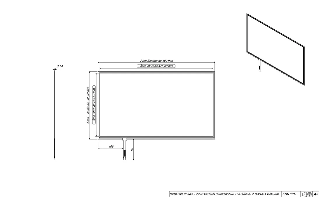 Kit Painel Sensível ao Toque Resistivo 21.5″ Formato 16:9