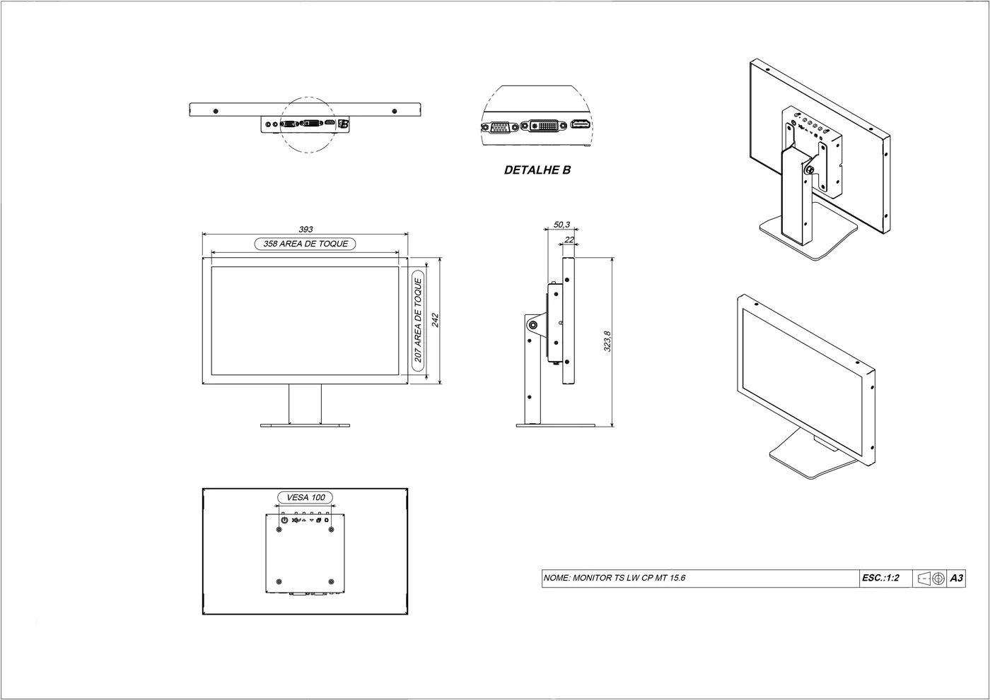 O Monitor Touch Screen Capacitivo Expandido de 15.6” foi projetado com objetivo de proporcionar rapidez, agilidade, qualidade e segurança. Fabricado em aço, com acabamento em pintura eletrostática na cor preta acetinada, possui furação padrão VESA que permite a adaptação em suportes disponíveis no mercado, assim como os de paredes. Ideal para automação industrial, comercial e residencial devido a sua robustez.