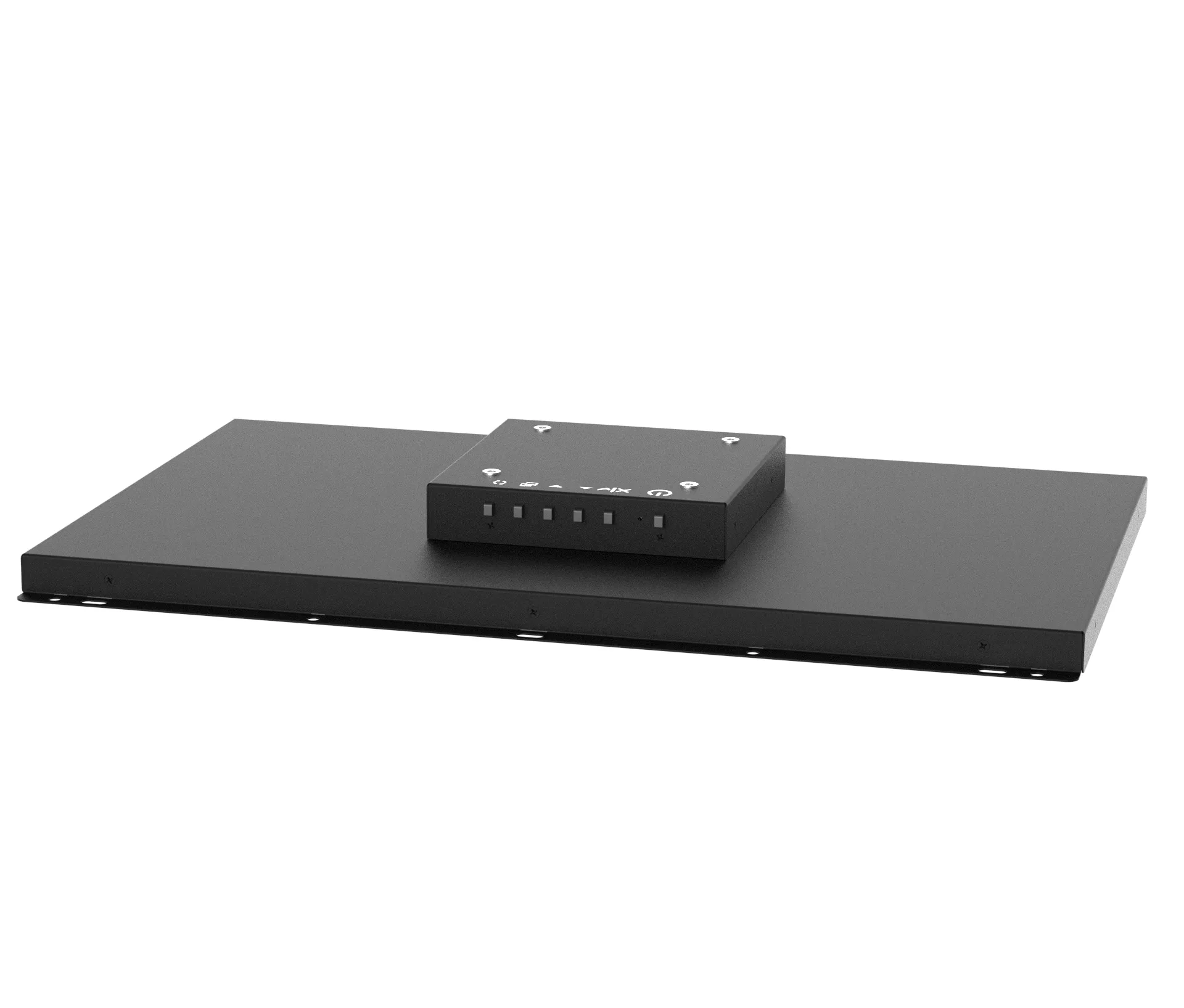 Primeiramente seu produto final deve ter a abertura, recorte ou janela no tamanho da área visível do monitor, a qual será detalhada na sequencia. Para fixar em seu produto final, pode ser utilizado parafuso nos furos ou nos oblongos.
