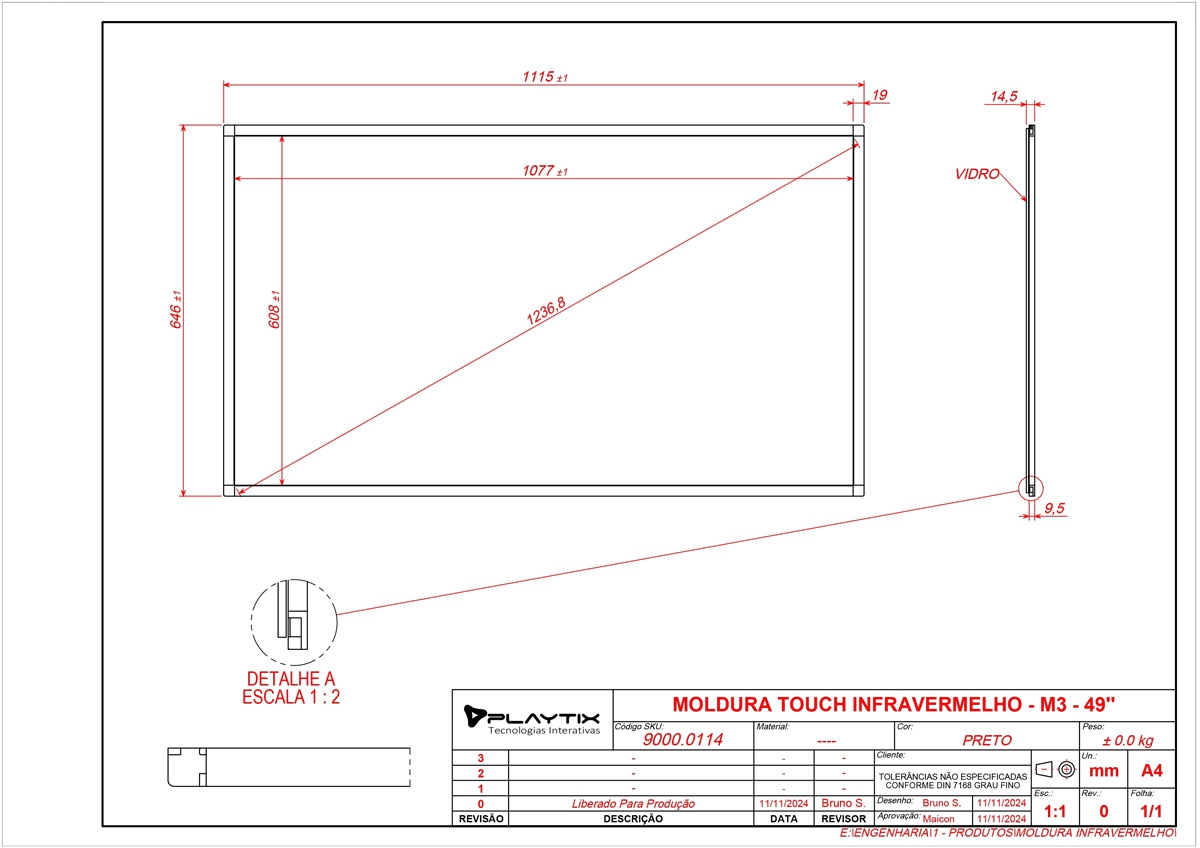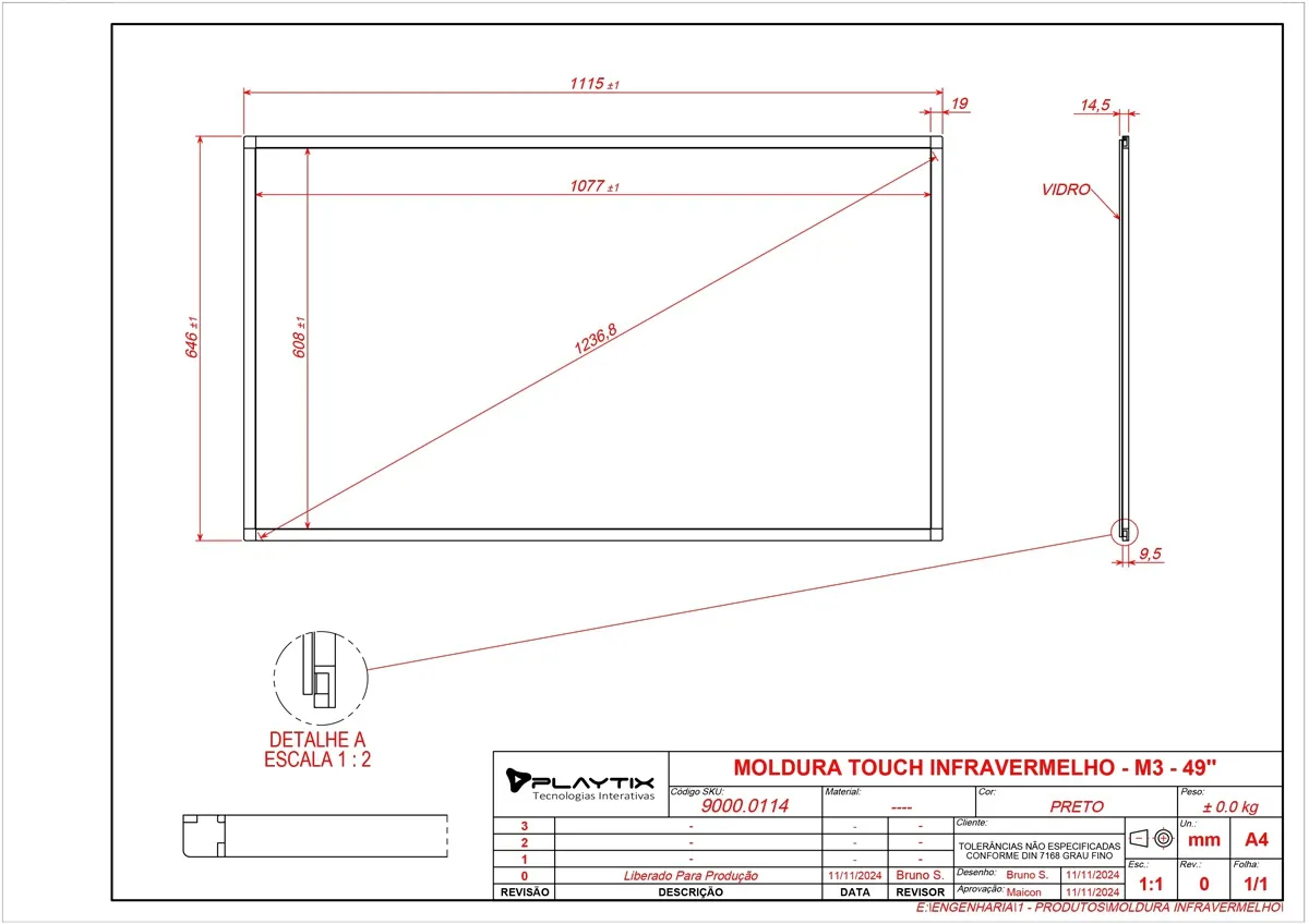 | Conteúdo da embalagem | Manual, Moldura infravermelha, Vidro temperado 4mm |