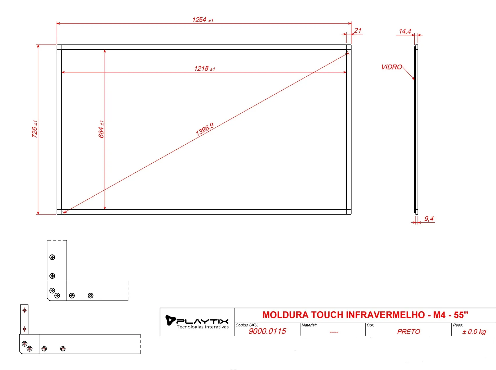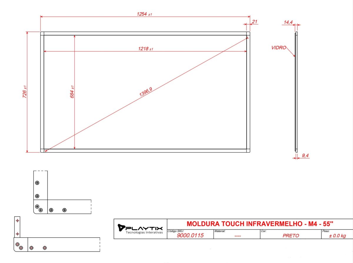 | Conteúdo da embalagem | Manual, Moldura infravermelha, Vidro temperado 4mm |